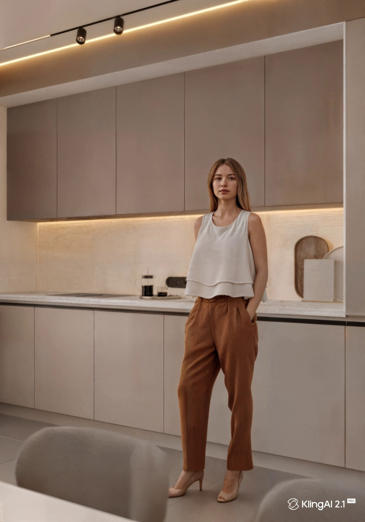 С помощью Kling AI создаётся видео: камера движется, свет включается, появляется атмосфера.