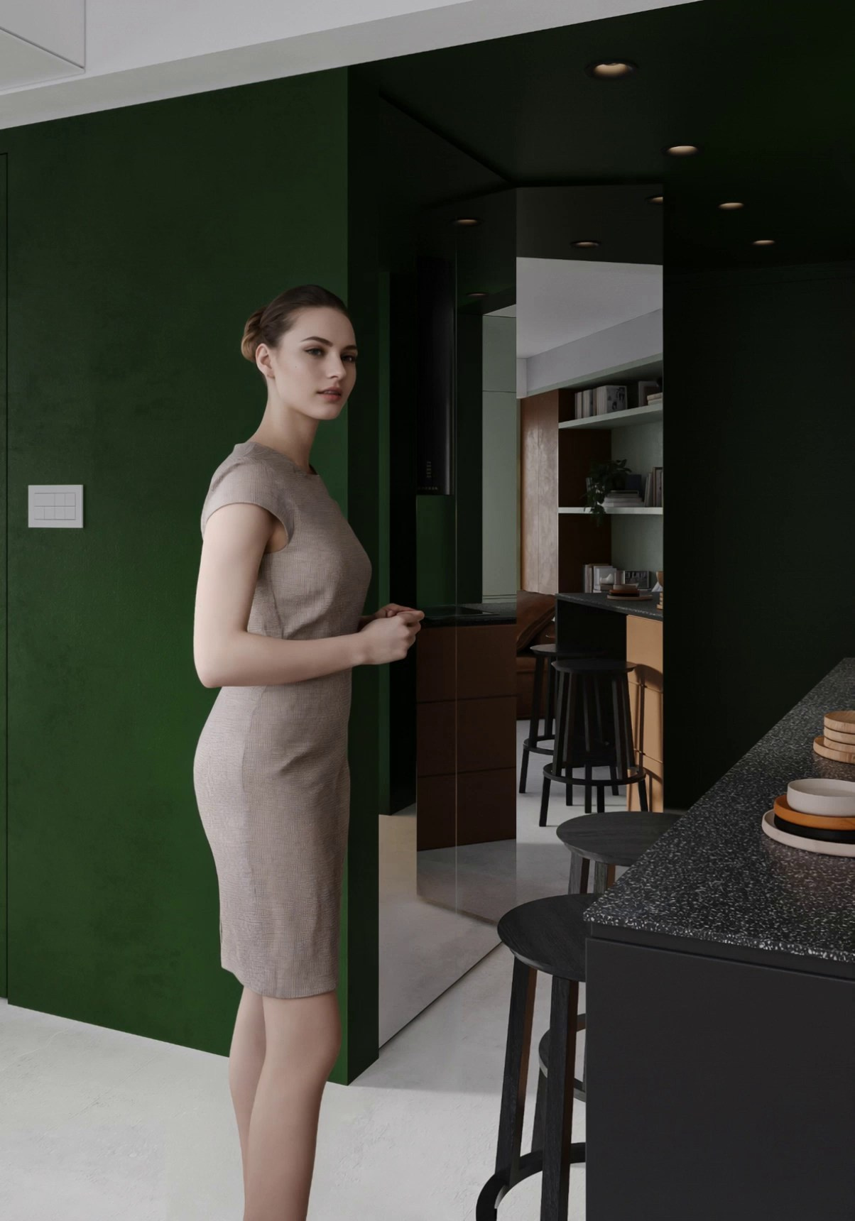 - Что это: Создайте полноценную историю! Добавьте в ваши оживленные рендеры динамичных ИИ-персонажей, чтобы показать сценарии использования пространства и вдохнуть жизнь в ваш проект.